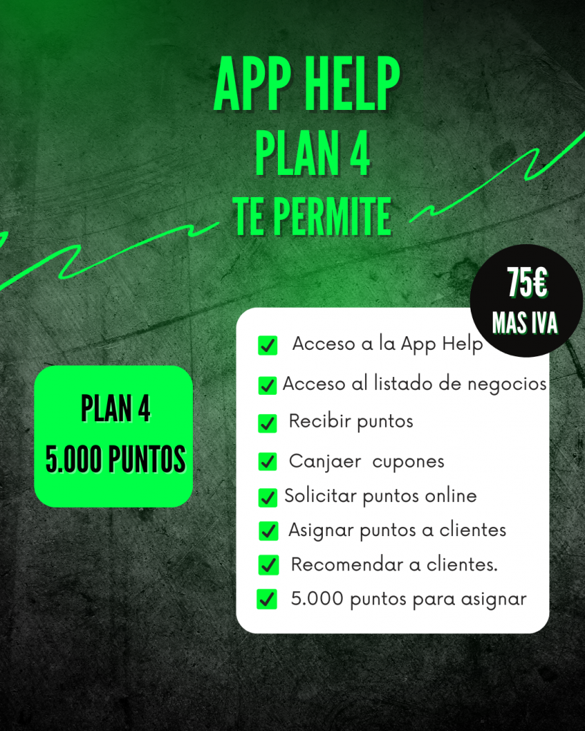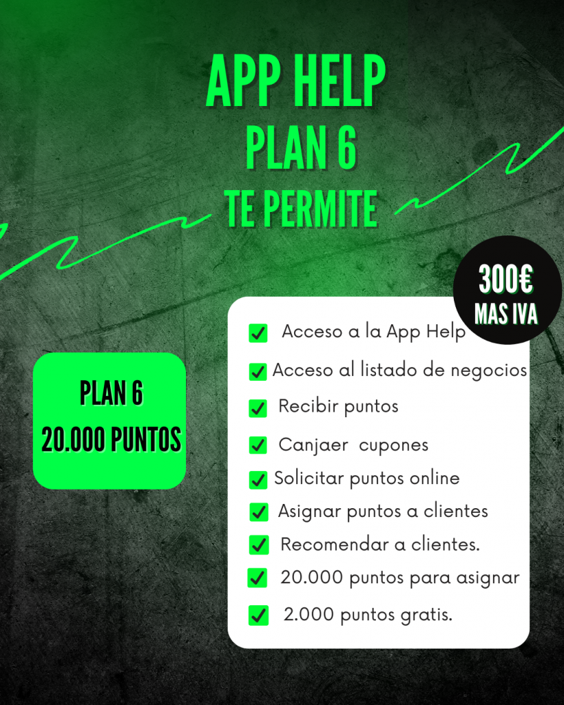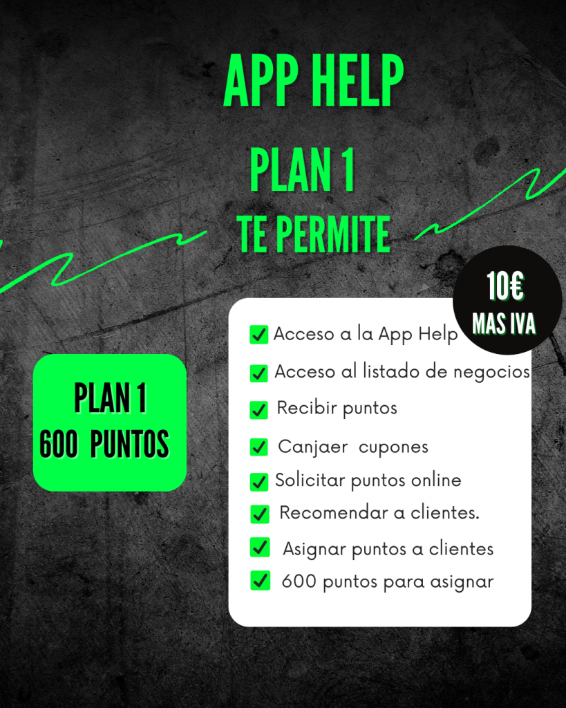 Si los negocios quieren aparecer en el listado de negocios y asignar puntos a sus clientes tienen que suscribirse a un plan. Pueden elegir el plan que más le interese: